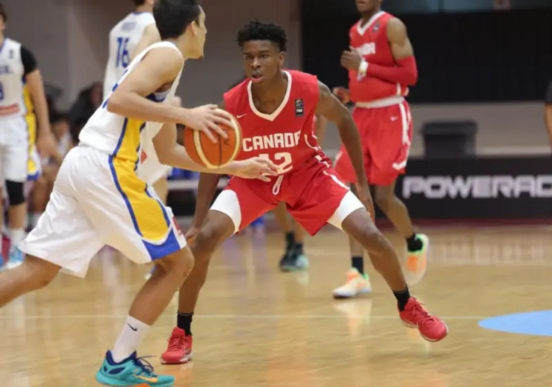 在加拿大U18国家队队伍中,亚历山大则穿着红色国家队配色款Nike Kobe 10。