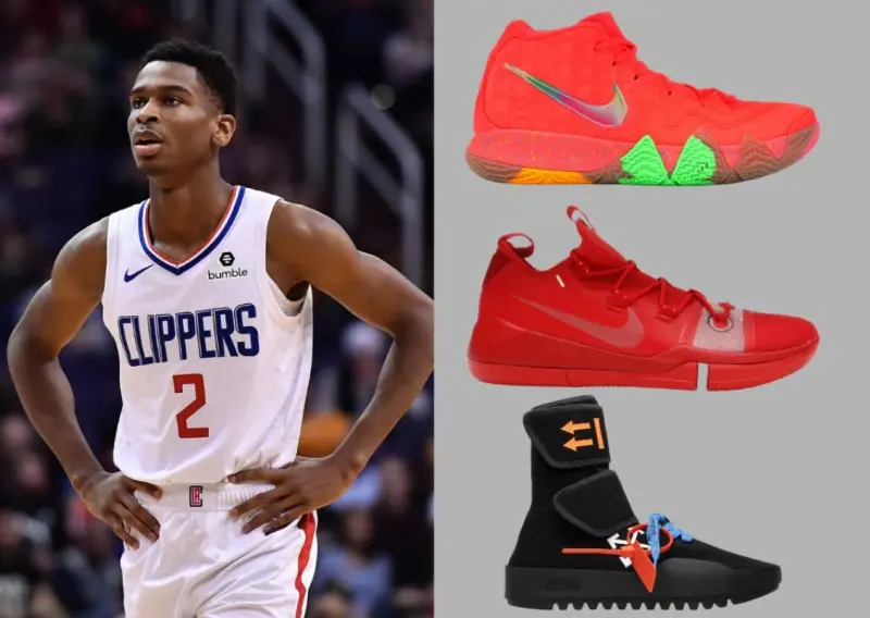 在刚刚加入快船队期间,亚历山大曾穿搭过Nike Kyrie 4 Lucky Charms (右上), Nike Kobe AD Exodus (右中), Off-White CST-001 (右下)
