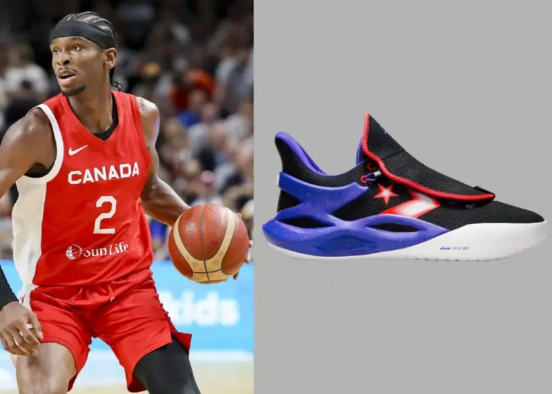 而在2023男篮世界杯期间,亚历山大则穿搭的是紫黑配色的Converse All Star BB Trilliant CX。